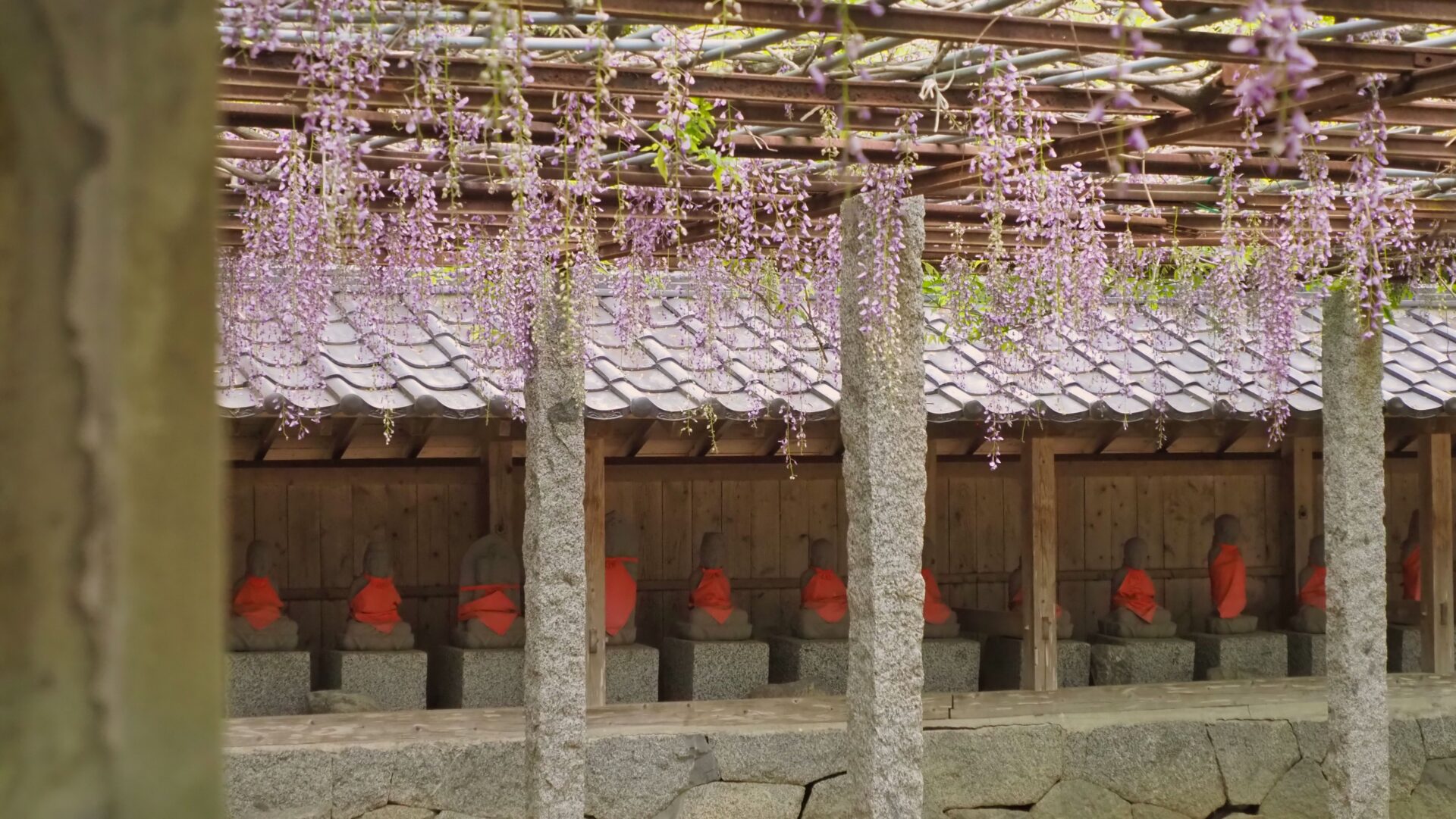 井原住吉神社のお地蔵様とフジ